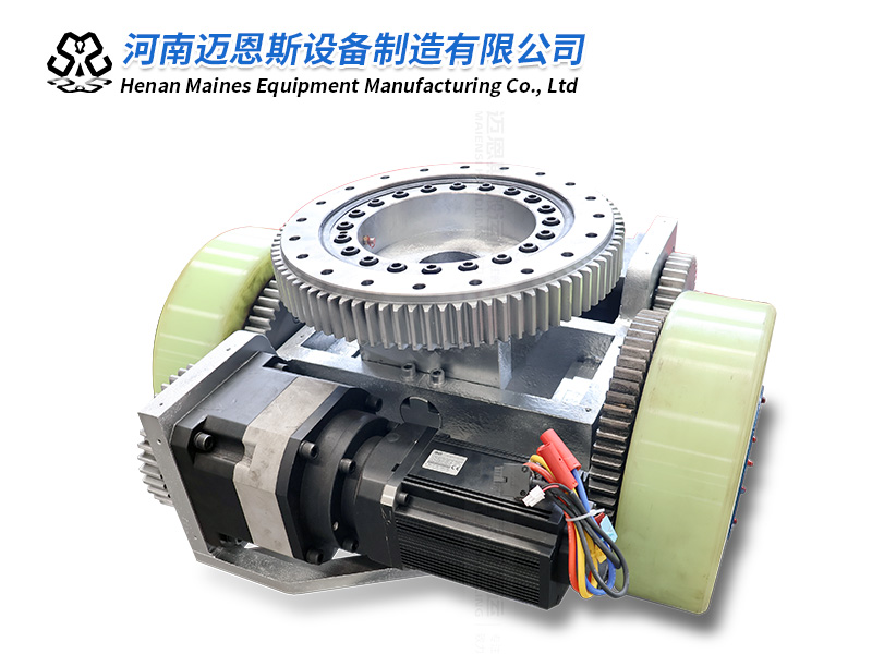 AGV專用重載差速舵輪,直徑40厘米雙組聚氨酯包膠鋼芯輪胎承重10噸。雙組大功率伺服電機行星減速機驅(qū)動,動力充足牽引力強。通過專用驅(qū)動器控制舵輪360度回轉(zhuǎn)、全向精準移動。利用電機轉(zhuǎn)速差實現(xiàn)舵輪滾動旋轉(zhuǎn),摩擦力小,可減少地面損傷、延長輪胎壽命。設(shè)有平衡裝置,避免車輪懸空打滑。上方回轉(zhuǎn)支撐可快速連接車架,通過回轉(zhuǎn)支撐齒輪盤編碼器精準控制差速舵輪旋轉(zhuǎn)角度。整體結(jié)構(gòu)牢固,設(shè)計合理,可快速部署到AGV或自動導(dǎo)引車進行作業(yè)。同時,邁恩斯還推出3噸、6噸、12噸重型臥式舵輪,期待您來電咨詢訂購。