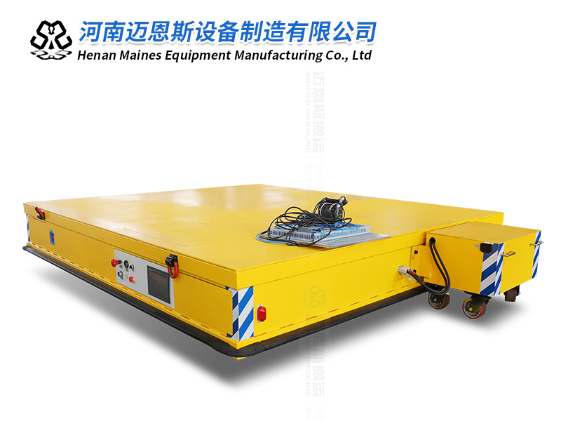 AGVRGV雙功能自動化電動搬運車,該車尺寸長3.5米,寬3.2米載重6噸。具有AGV和RGV的雙重功能,AGV模式下,采用工業(yè)蓄電池供電,可自動循跡導(dǎo)航完成自動化移動搬運作業(yè)。RGV模式下工作時,采用外接電纜線交流供電,通過換軌升降裝置,切換到軌道上移動作業(yè),自動識別站點信息,實現(xiàn)定點???,完成自動化作業(yè)。底盤腳輪由臥式舵輪和鑄鋼車輪構(gòu)成。地面上通過舵輪完成原地旋轉(zhuǎn)、左右左移等多向移動。軌道上面通過鑄鋼車輛完成前進、后退移動。設(shè)有HMI人機交互觸摸屏,可實時顯示車輛參數(shù)信息,便于監(jiān)控車輛是否異常。自動化和手動兩種操作模式,操作簡單使用方便。車體四周設(shè)有防撞條傳感器,車輛發(fā)生觸碰可自動停車,避免碰撞事故發(fā)生。邁恩斯支持定制各種非標自動化搬運設(shè)備制造,現(xiàn)在咨詢,馬上報價。