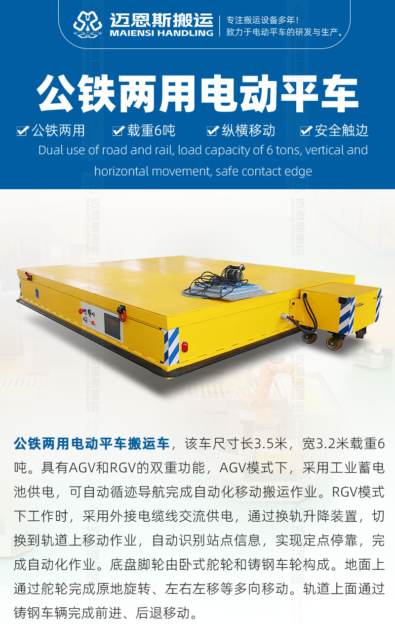 —— 查看更多舵輪全向移動電動平車,該車平臺長度7米,寬2.4米,高度92厘米,客戶主要用來搬...