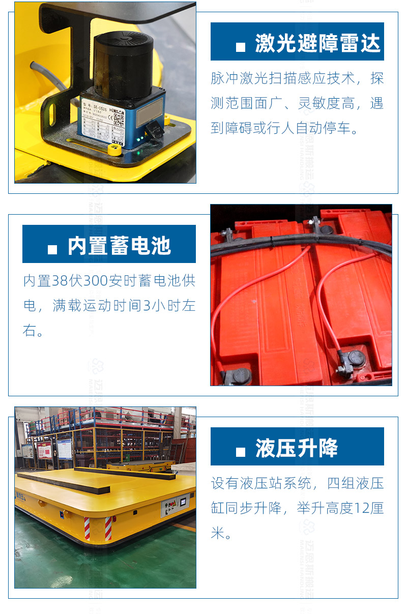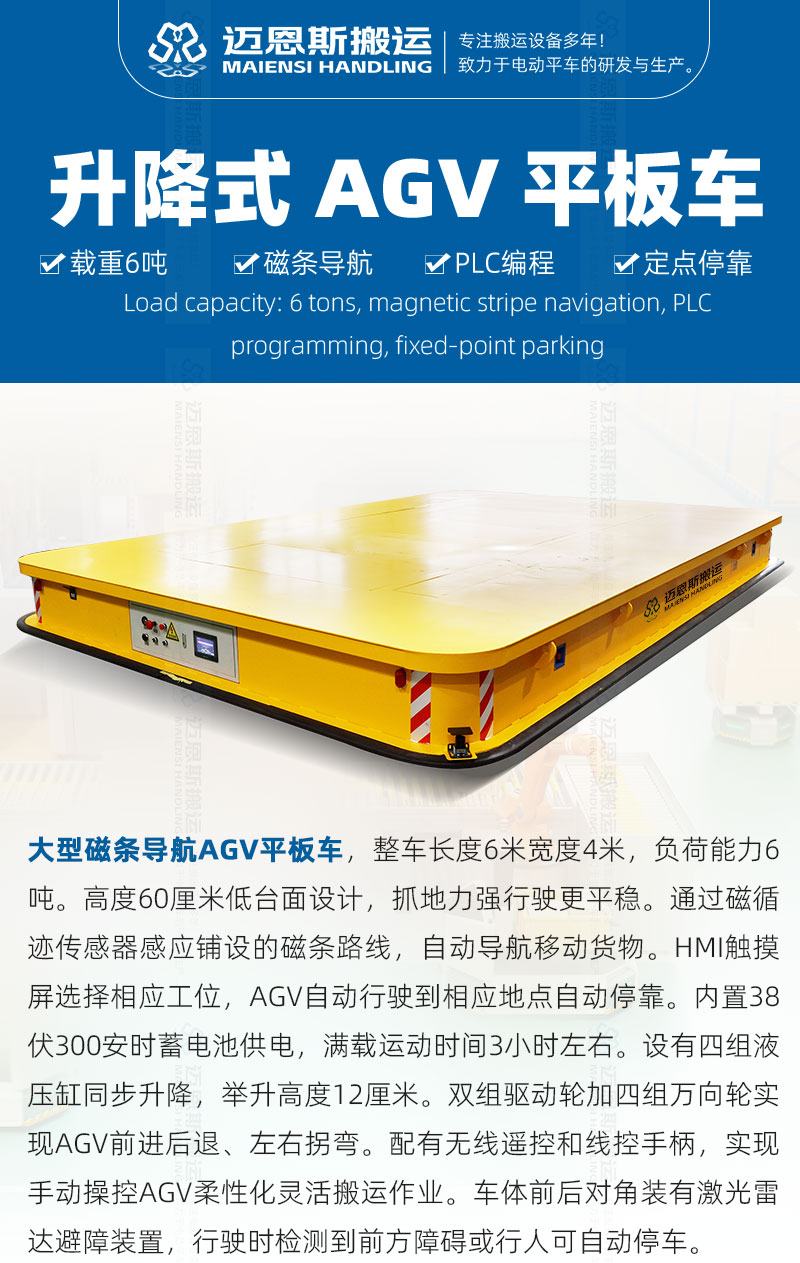 —— 查看更多這是一臺(tái)磁導(dǎo)航重型AGV客戶使用現(xiàn)場(chǎng),整車長(zhǎng)度4.5米,寬2.8米,高90厘米,...