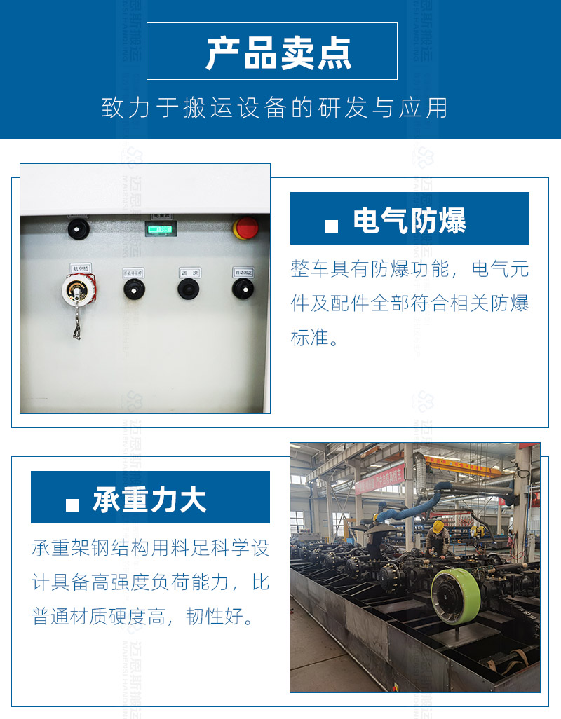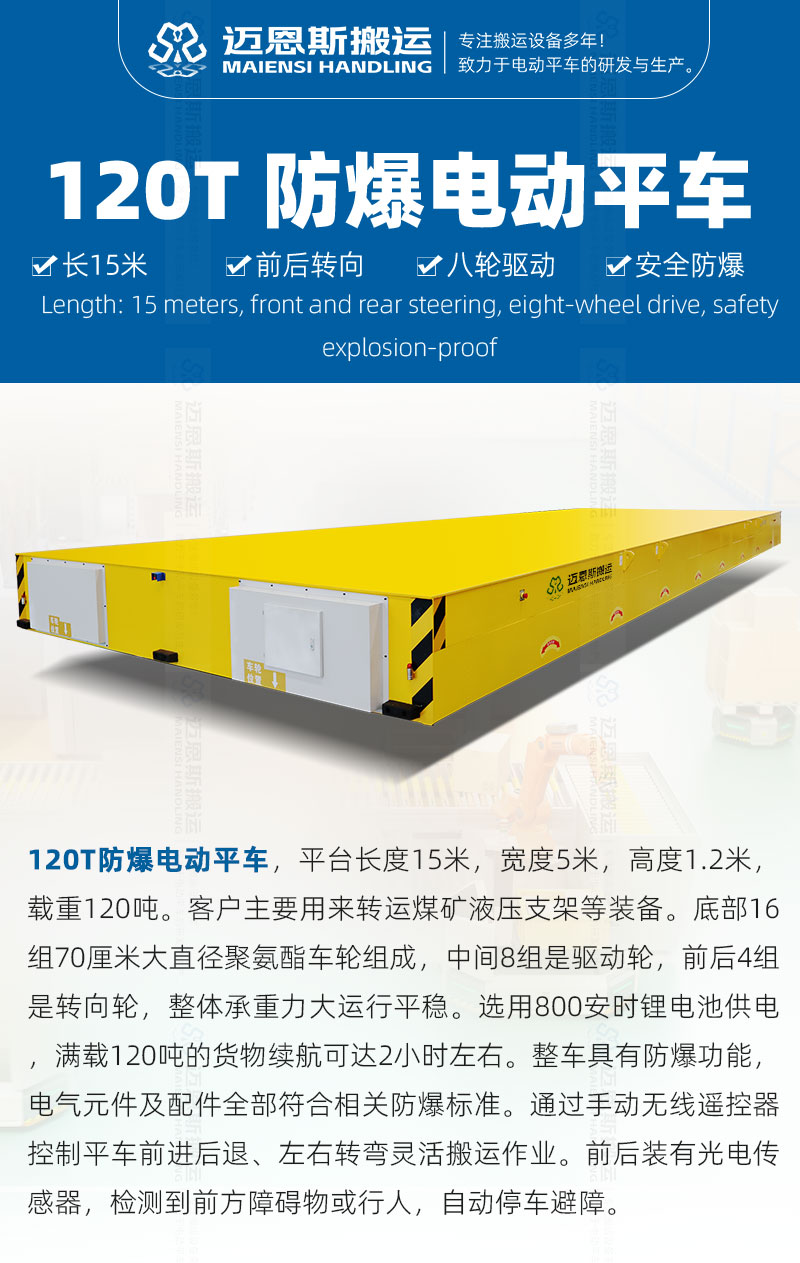 —— 查看更多舵輪全向移動電動平車,該車平臺長度7米,寬2.4米,高度92厘米,客戶主要用來搬...
